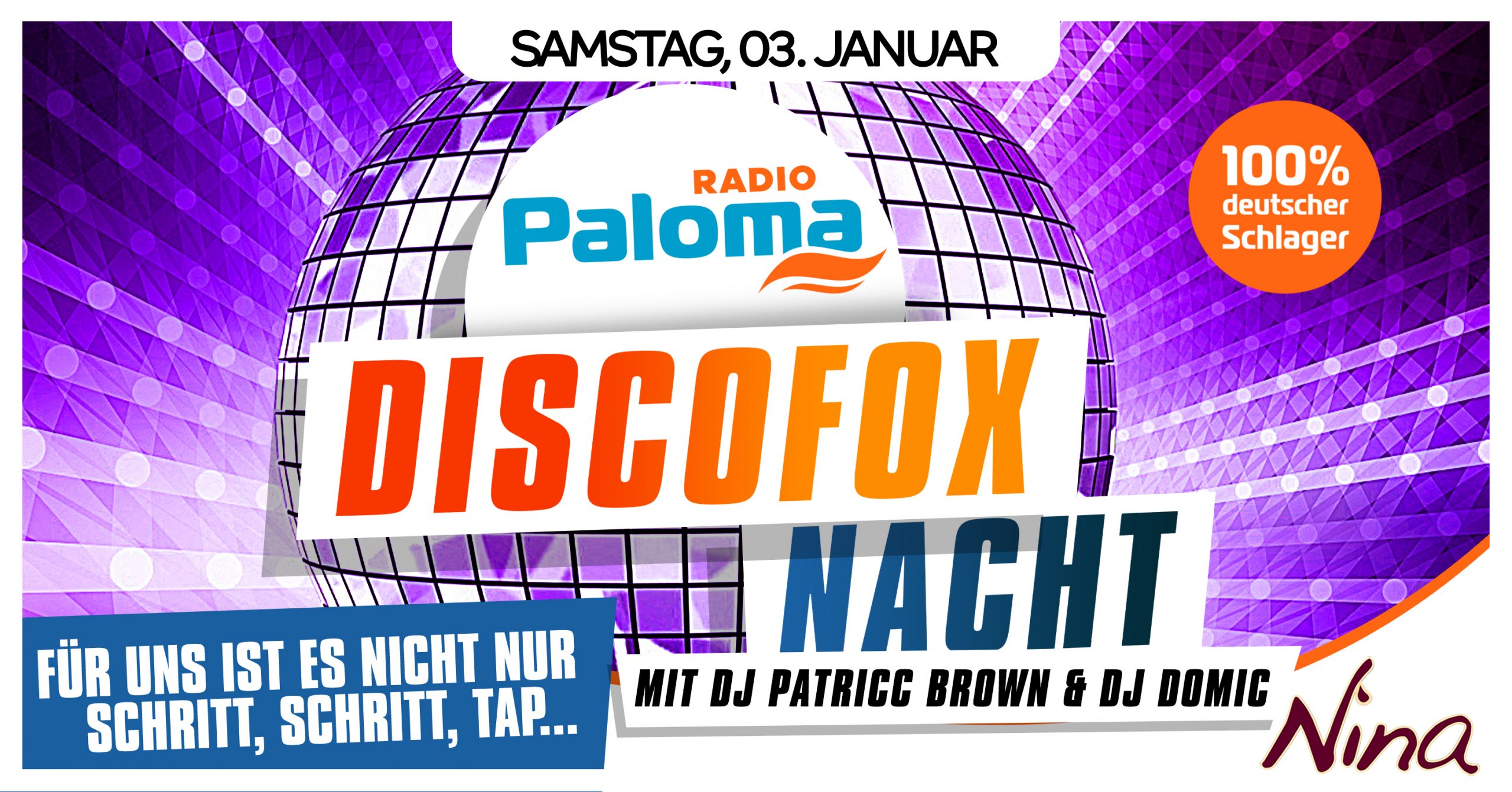 Am Samstag, den 03. Januar, lädt das Tanzlokal NINA gemeinsam mit Radio Paloma wieder alle Discofox-Fans und Tanzbegeisterten ein, die Nacht zum Tag zu machen.